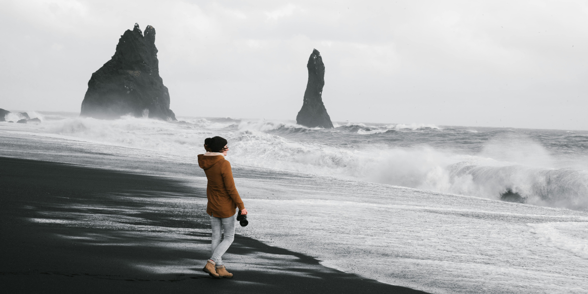 Утро начнём с горячей чашки кофе и прогулки по одному из самых завораживающих мест в Исландии – пляжу Рейнисфьяра. Его чёрный песок – результат древней вулканической активности — застывшая лава, измельчённая временем и морем. Узкие базальтовые колонны, словно органные трубы, поднимаются над берегом – их когда-то вытесала из горы Рейнисфьядль сама природа, используя вулканы, воду и вечность. Это место часто мелькает в фильмах и сериалах, но вживую оно в сто раз мощнее. Море здесь бушует с характером, а среди волн можно заметить тюленей, морских птиц – и, если повезёт, китов вдалеке. Прогулка по Рейнисфьяре – это как прогулка по декорациям мифа.
