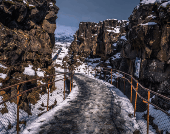Это место — живая история, исландский аналог Афин, где закон и дух народа встретились на земле и под небом. Кроме исторической значимости, Тингведлир — ещё и уникальное геологическое явление: здесь наглядно видно, как тектонические плиты Северной Америки и Евразии буквально расходятся, образуя разлом Пеннингагья, тянущийся сквозь всю долину.