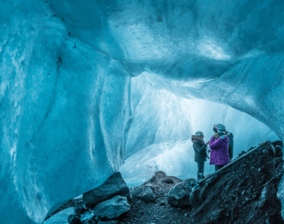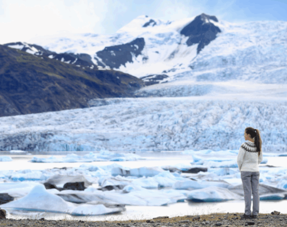 Затем мы направляемся в сторону национального парка Ватнайёкюдль, где раскинулся самый большой ледник Европы, покрывающий почти 8% территории Исландии. Здесь мы отправимся в трёхчасовой поход по леднику Скафтафетль с местными проводниками. Белизна снега, синие трещины во льду, кристальные формы — всё это производит неизгладимое впечатление. Одним из главных чудес дня станет посещение Кристальной ледяной пещеры — прозрачной, как стекло, и искрящейся всеми оттенками синего. Это место — как внутри замёрзшей волны, застывшей в танце света и времени.